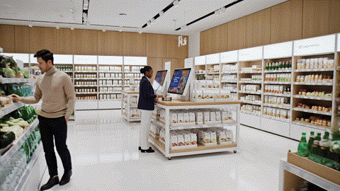 We might not actually need large scale super markets. A chain of kiosks might work just fine. But just in case, here is a slightly larger version of the Kiosk that sells both physical and digital products-